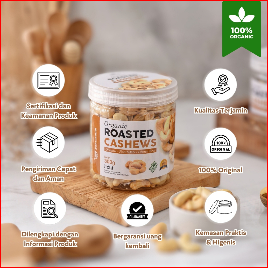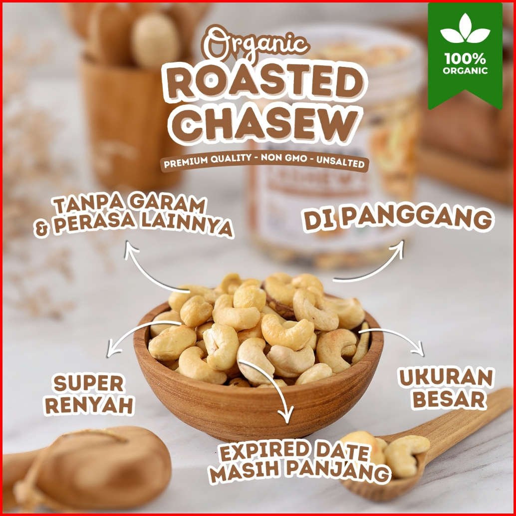 Kacang Mede Premium Panggang Organik Utuh Renyah Oven Roasted Cashew Nut Organic Matang Mente Mete