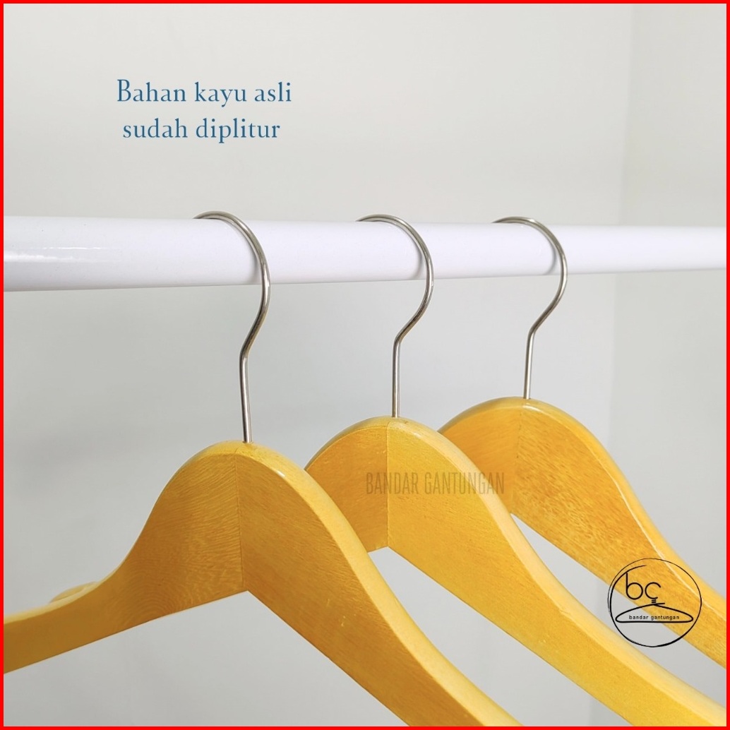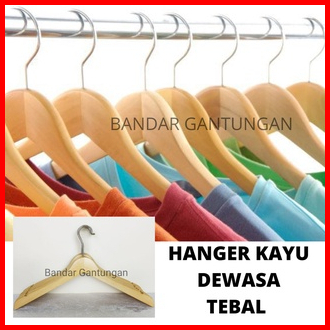 1 Lusin Hanger Kayu Dewasa Natural Super Tebal Wood Hanger Dewasa Hanger Distro Gantungan Baju Kayu Warna Tebal Hanger K