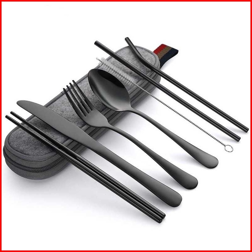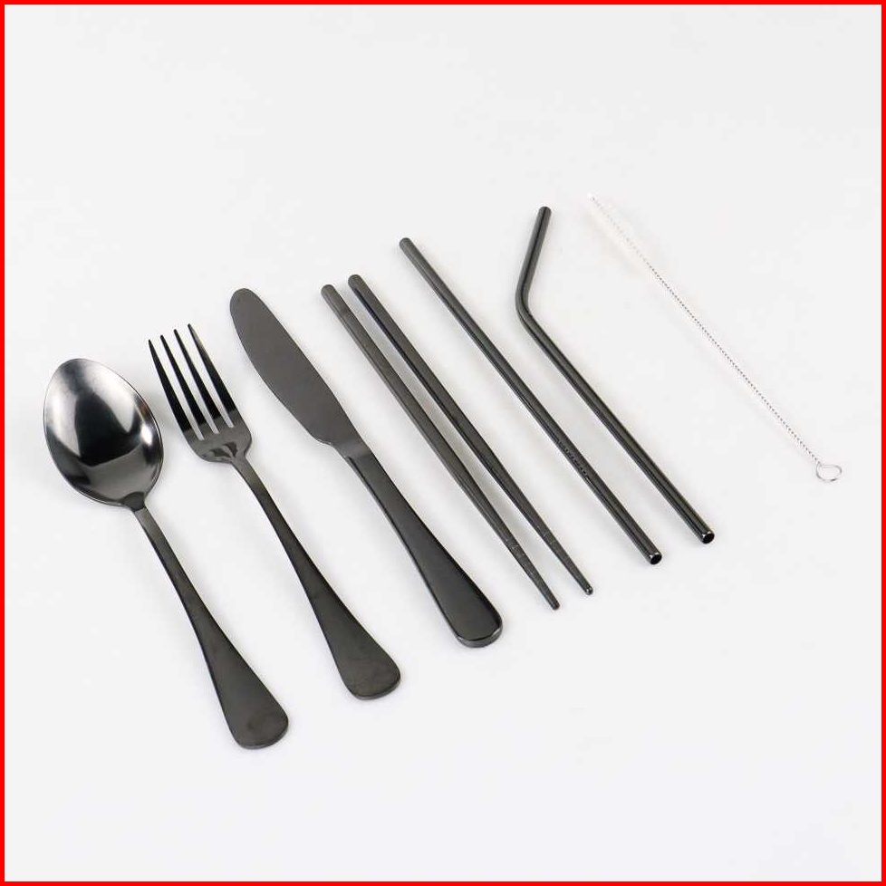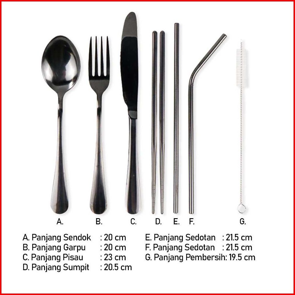 Knifezer Set Alat Makan Sendok Garpu Pisau Sumpit Sedotan - Ea02300