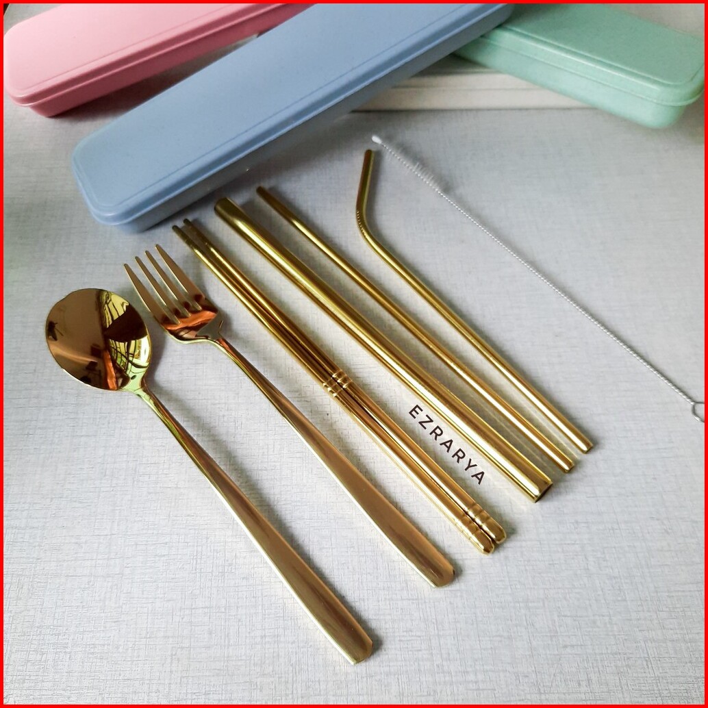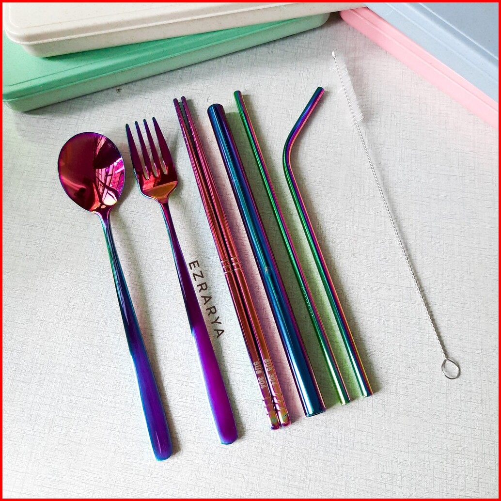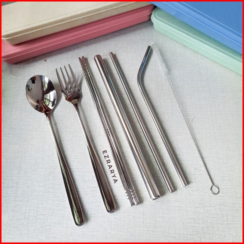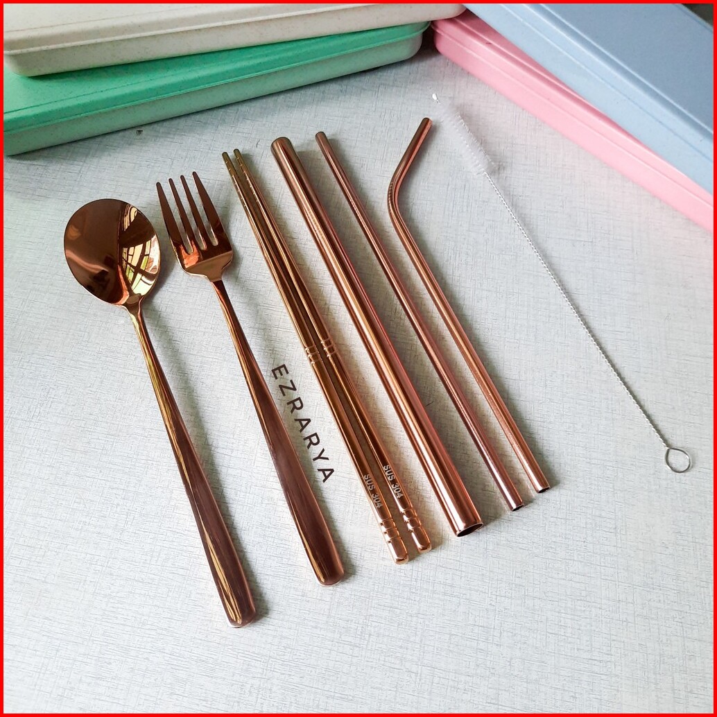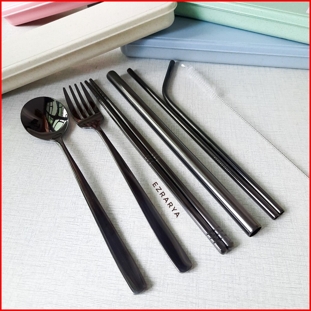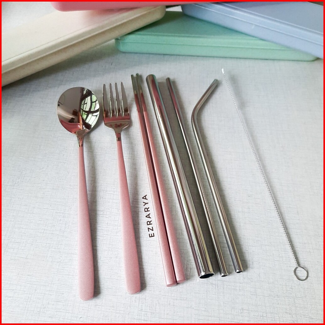 Sendok Garpu Set Alat Makan Sendok Korea Dengan Sedotan 8 In 1