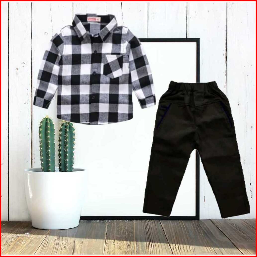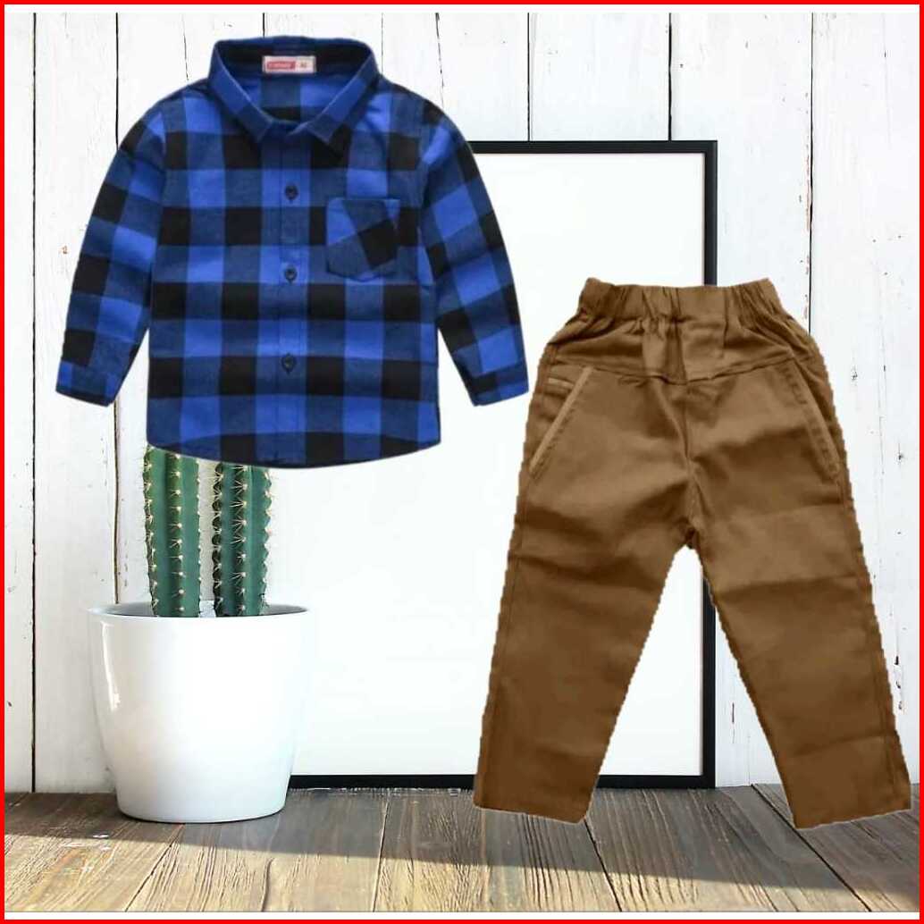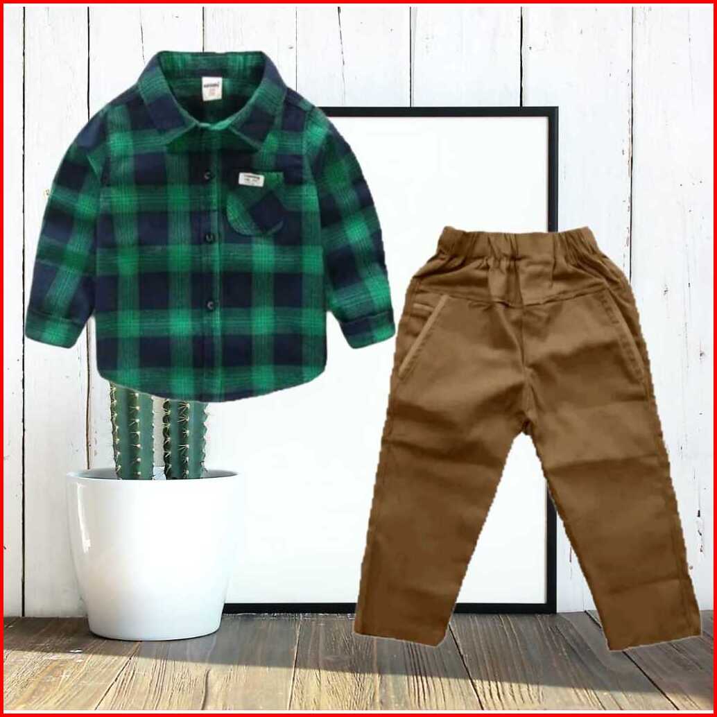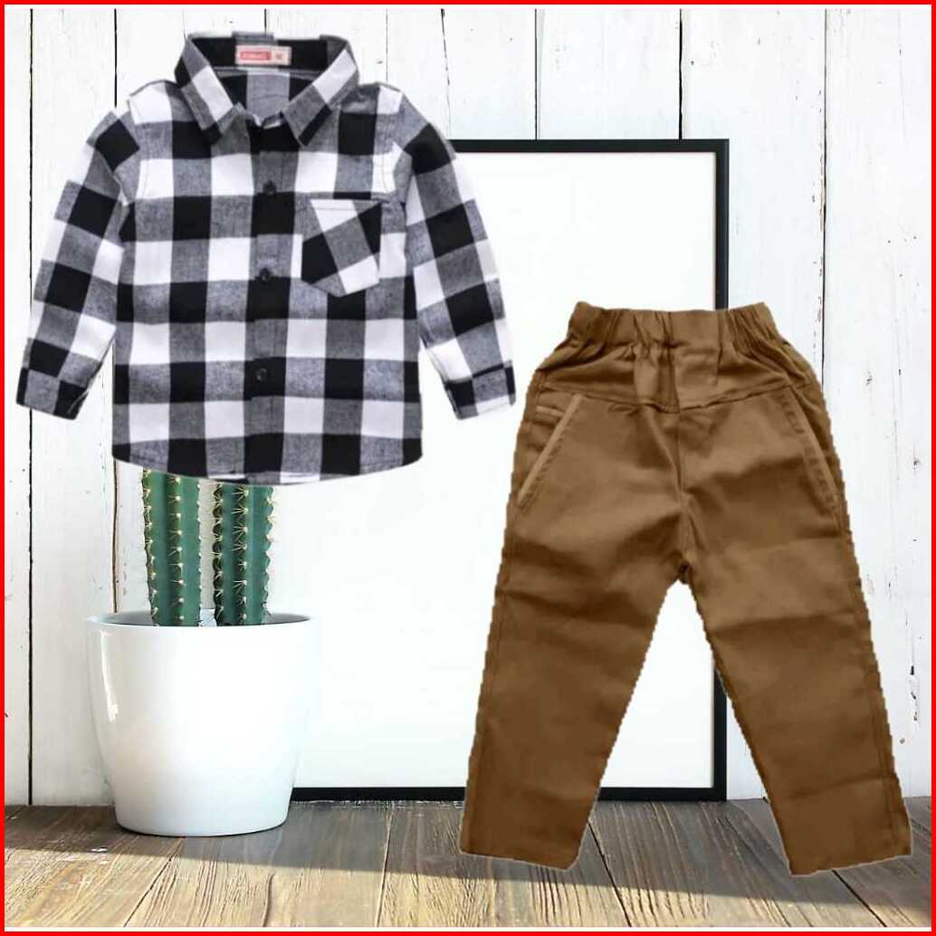 Setelan Anak Kemeja Flanel Dan Celana Anak Chinos Panjang 1-10 Thn