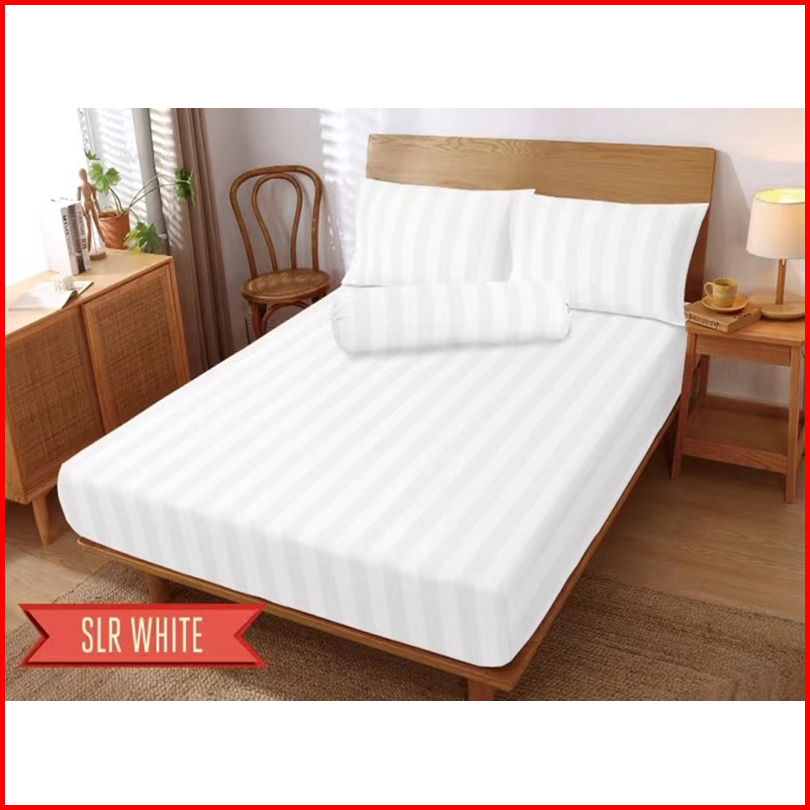 Set Sprei Hotel Karet Sudut Bahan Katun Premium Embos Salur Tinggi 20cm