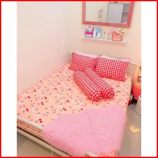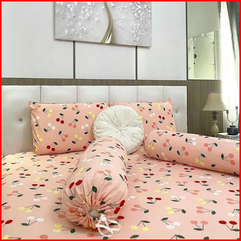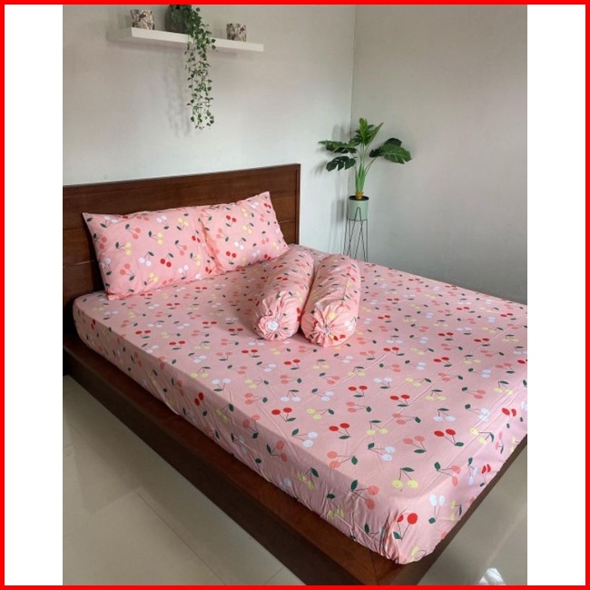 Sprei Set Bantal Guling Ready Stok Murah Free Anti Geser Spreqi Katun Lokal Premium Sprei Aesthetic Homemade Motif Chery