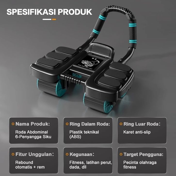 Ab Roller 4 Wheel 3in1 Hitung Cerdas Alat Olahraga Di Rumah Untuk Latihan Otot Perut