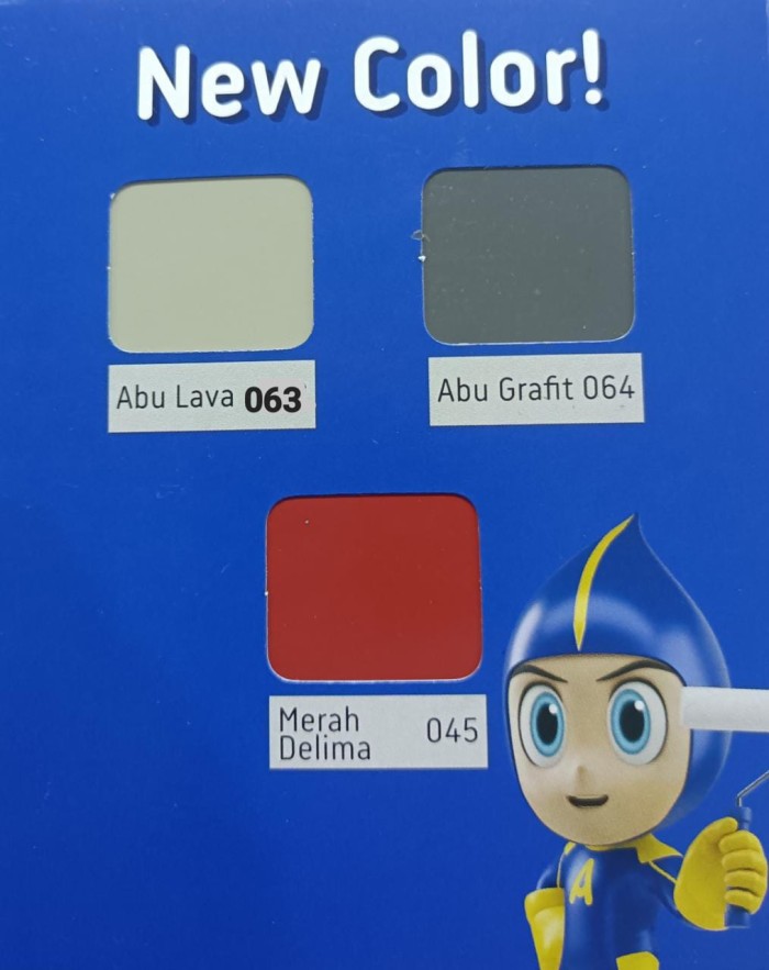 061-ABU-ABU, 062-ABU MUDA, 063-ABU LAVA, 064-ABU GRAVIT, 001-TRANSPARANT, 011-PUTIH, 031-BIRU, 032-BIRU MUDA, 042-TERAKOTA, 041-MERAH