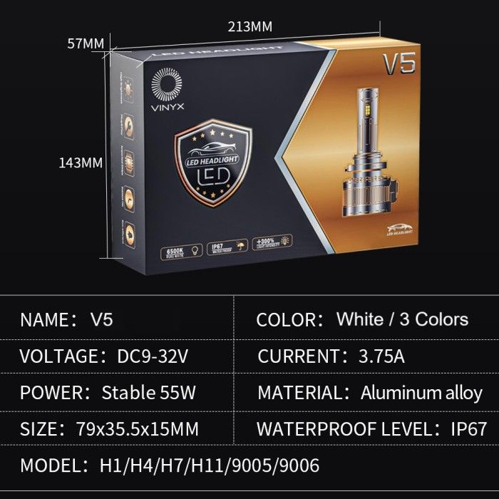 Lampu Utama Mobil LED Vinyx V5 55 Watt Foglamp H1 H3 H4 H7 H11 HB3 HB4