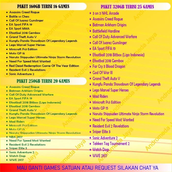 160gb No Stik, HITAM 160 2S OP, HITAM 1TB 2S OP, HITAM 250 2S OP, HITAM 320 2S OP, HITAM 500 2S OP, PUTIH 160 2S OP, PUTIH 250 2S OP, PUTIH 320 2S OP, PUTIH 500 2S OP