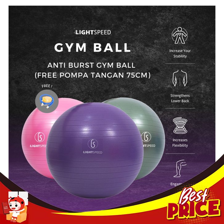 LIGHTSPEED Anti Burst Gym Ball (INCLUDE Hand Pump 75cm) AntiSlip Ball / Bola Gym