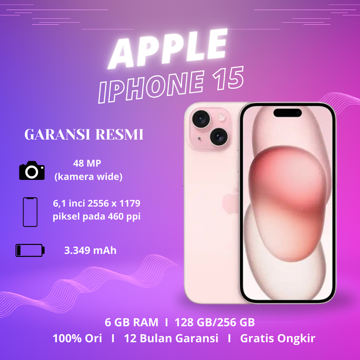[Mall] Iphone 15 Second Original 128gb / 256gb Tanpa Dp Garansi Resmi Terlaris Berkualitas Free Ongkir