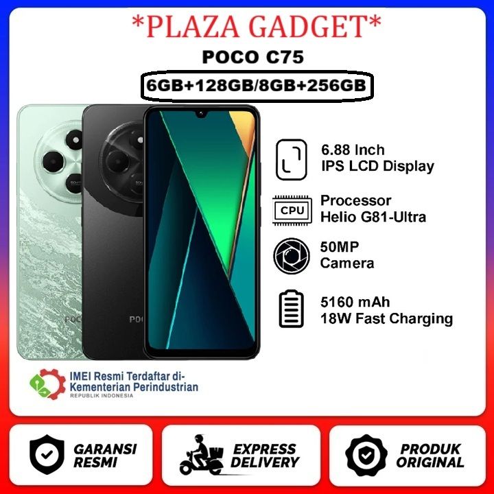 POCO C75 6/128GB+8/256GB NFC Layar 6,88" | 50MP AI | Refresh rate 120 Hz | Baterai 5.160mAh | 18W Pengisian cepat