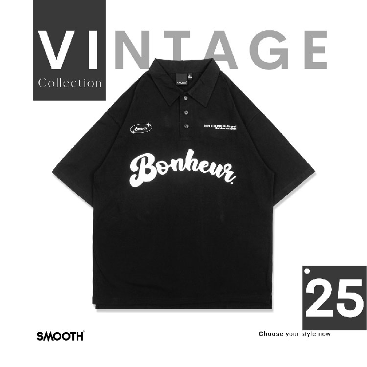 SMOOTH BASIC Vintage Polo Oversized Shirt Bonheur Black Original