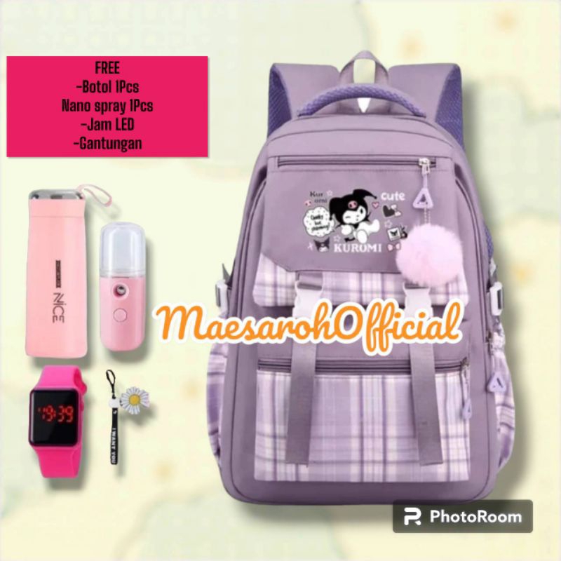 Tas Ransel Anak Perempuan LABUBU Bags Tas Sekolah Anak SD Botol Minum Nano Spray Jam