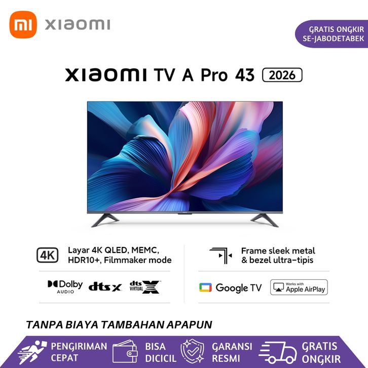 Xiaomi TV A Pro 43 2026 | Layar 4K QLED MEMC HDR10+ Filmmaker Mode | Frame sleek metal & bezel ultra tipis | Dolby Audio