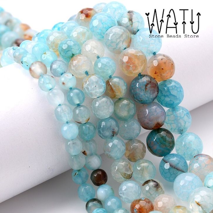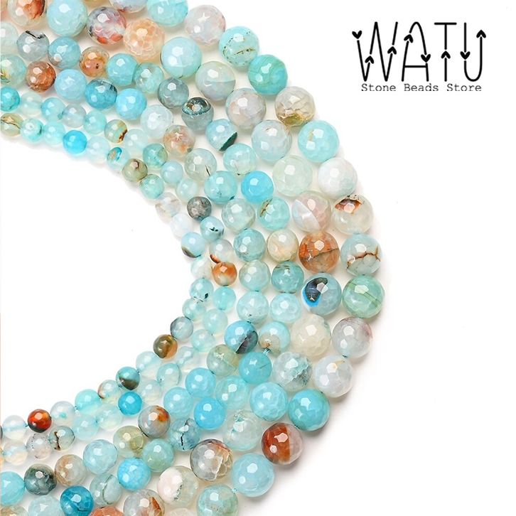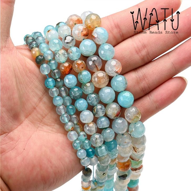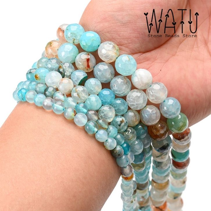 Batu Alam Bulat Aquamarine Serat Watermelon Agate Kuarsa Alami Manik Manik Membuat Gelang