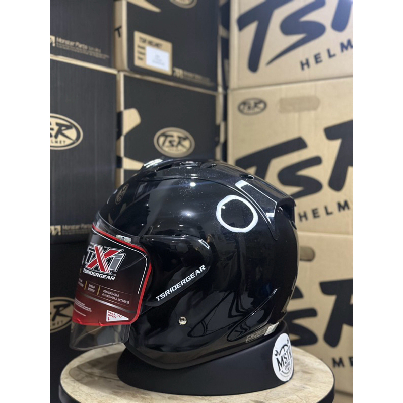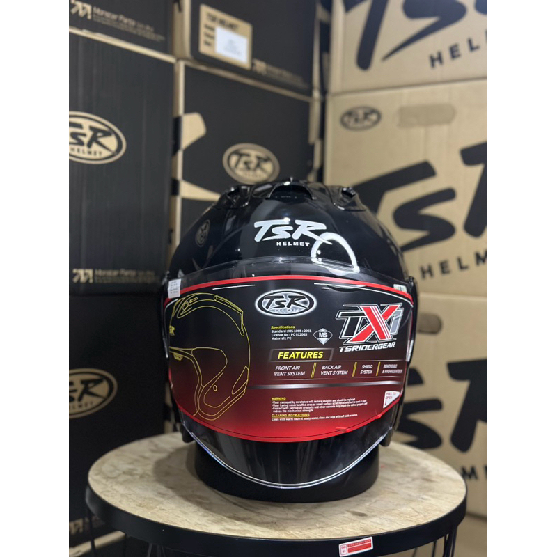 Helm TSR TX1 Glass black / Polos Solid Hitam Glossy