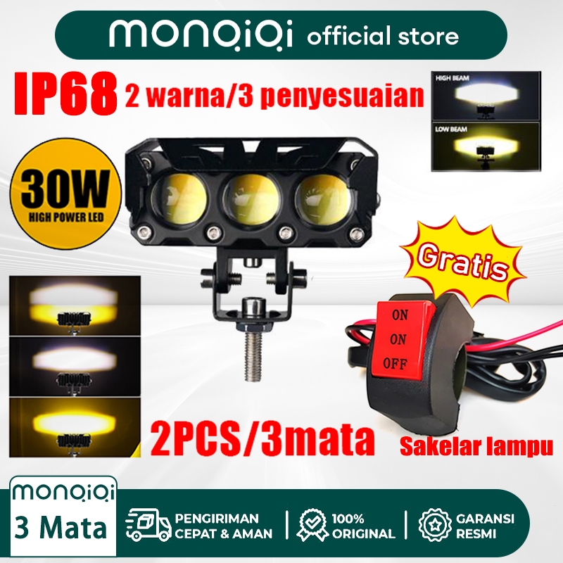 Lampu Motor LED Super Terang Lampu SQL 3 Mata LED Tembak Laser Foglamp Mobil Motor Lampu Tembak Laser Gun Putih Kuning 2