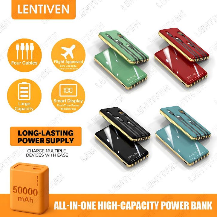 HZSUM LENTIVEN PowerBank 50000mAh 4 KABEL Full Capacity Mini Fast Charging