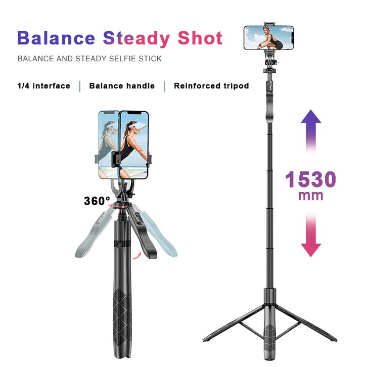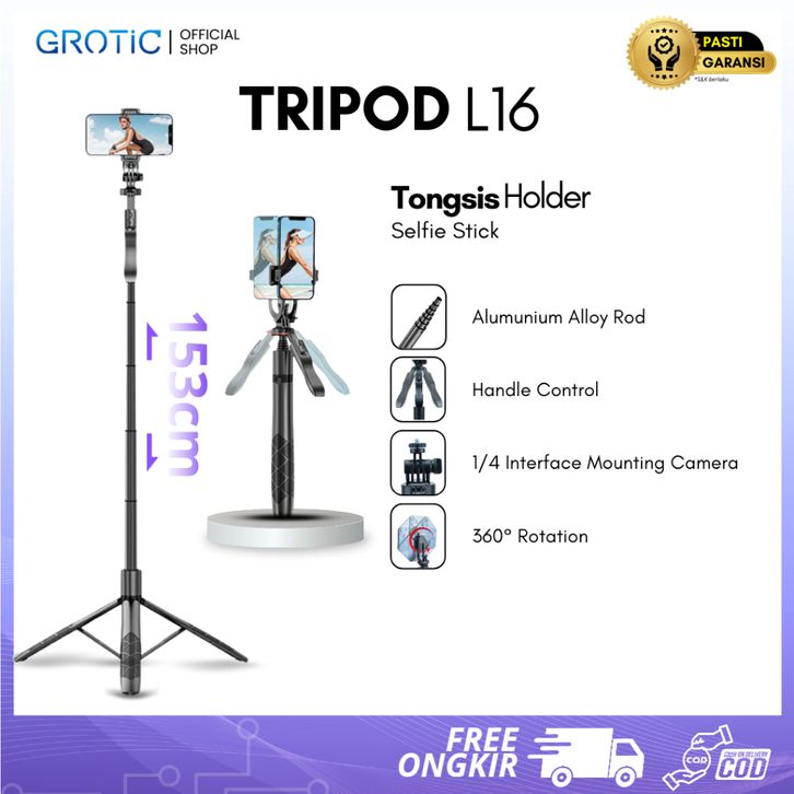 GROTIC Tripod Handphone Tongsis Monopod Portable With Remote Bluetooth And Stabilizer 153cm L16