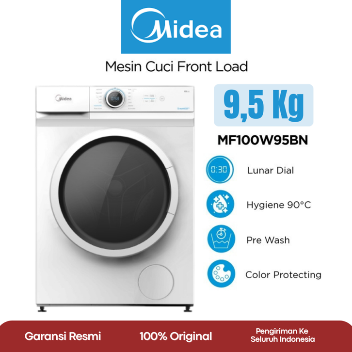 MESIN CUCI FRONT LOADING MIDEA KAPASITAS 9.5 KG 9KG 8KG 7KG PINTU DEPAN MESIN LAUNDRY 1 TABUNG INVERTER 9 8 7 KG TERBARU