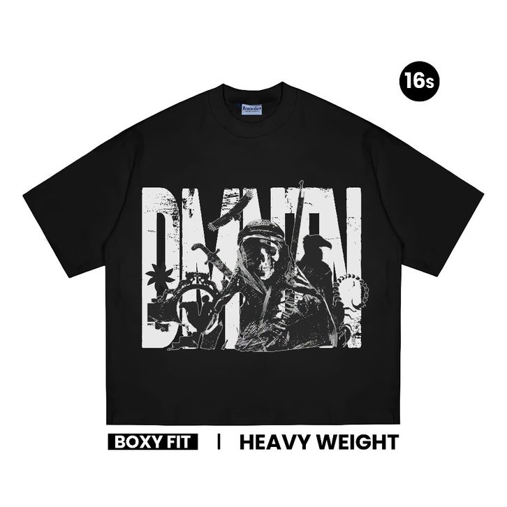 DOMINATION LABS KAOS 16S OVERSIZED BOXY T-SHIRT UNSENDED HITAM HEAVYWEIGHT COTTON