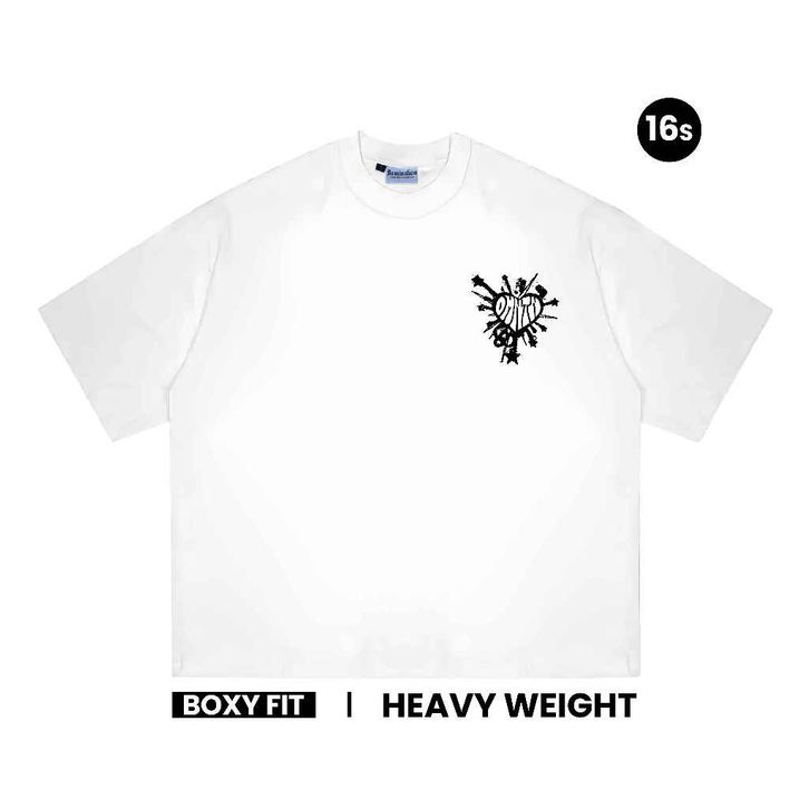 DOMINATION LABS KAOS 16S OVERSIZED BOXY T-SHIRT ENDLESS PUTIH HEAVYWEIGHT COTTON