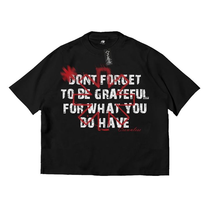 CROWNLESS BOXY FIT GRATEFUL BLACK KAOS OVERSIZED PRIA DAN WANITA TSHIRT OVERSIZE COTTON COMBAD 20S