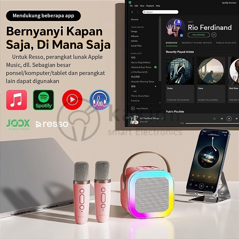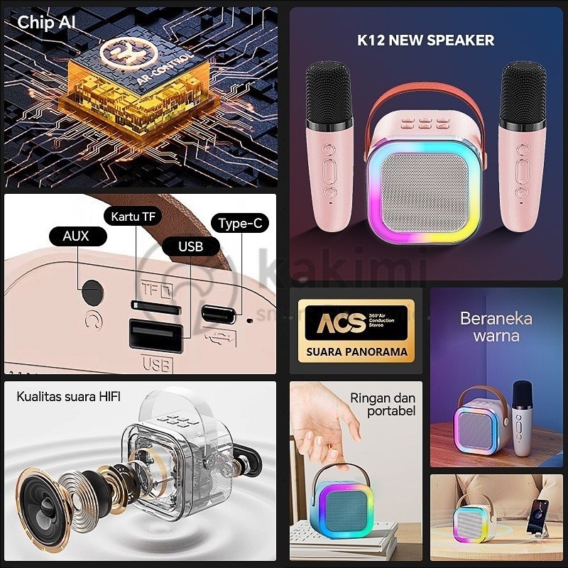 Kakimi K12 Speaker Bluetooth Plus Mic Actual Bluetooth Mini Speaker Portable Karaoke Speaker with 2 MIC 1 SET RGB