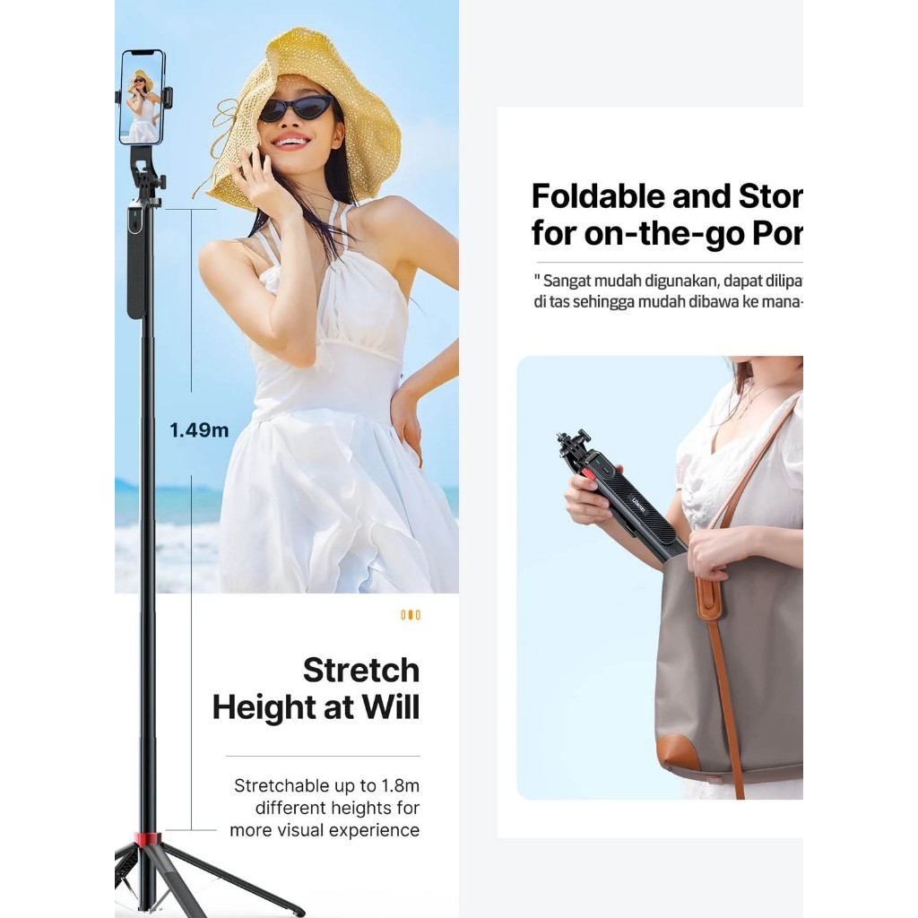 SELFIE STICK 1.8M P185 + 2 Lampu Tripod Quadpod Tongsis Bluetooth Selfie Stick Remote HP 360 Stabilizer