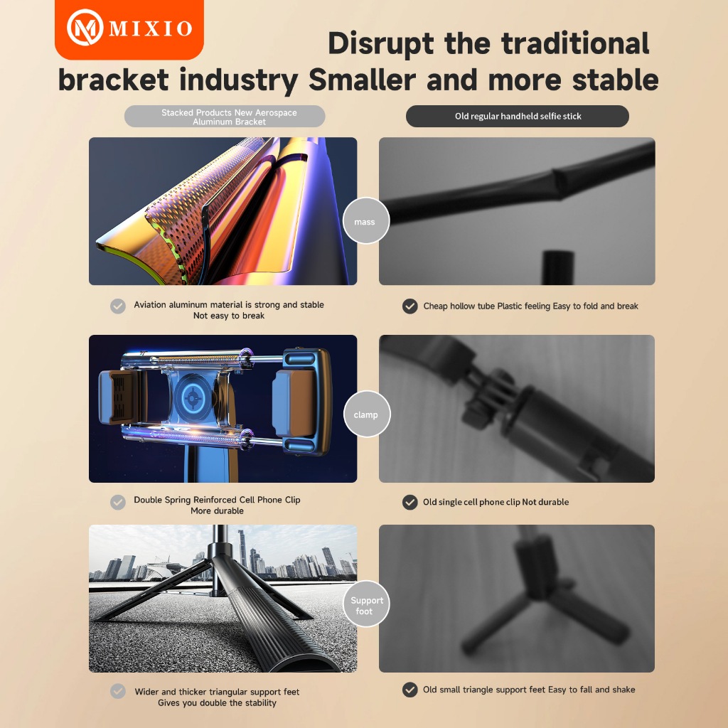 MIXIO A35 - 160CM Tongsis Bluetooth Selfie Stick Tripod with Remote BT