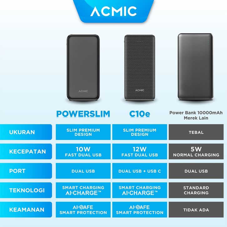 ACMIC PowerSlim 10000mAh Slim PowerBank 2A Fast Charge