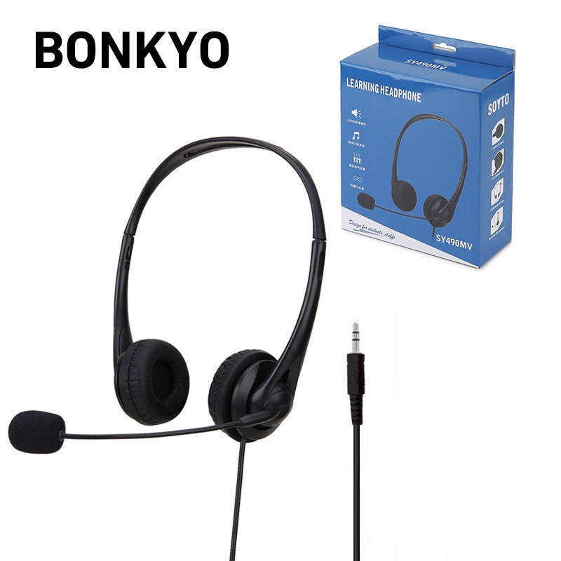 Headphone stereo dengan mikrofon dan single jack 3.5mm Cocok untuk pembelajaran di kantor