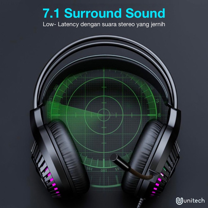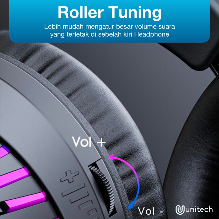 Headphone Gaming Kabel Unitech Kaizen Series Super Bass LED RGB + Mic - Headset Gaming Hp