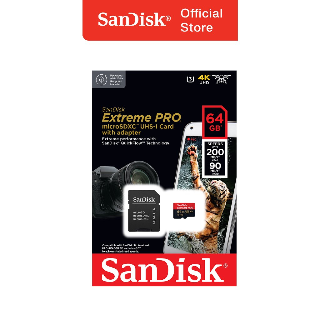 SanDisk microSDXC Extreme Pro 64GB Class 10 UHS-I A2 V30 U3 4K UHD Action Cam (Up to 200MB/s)