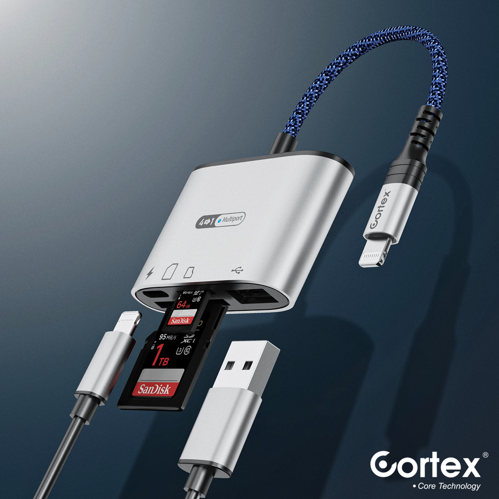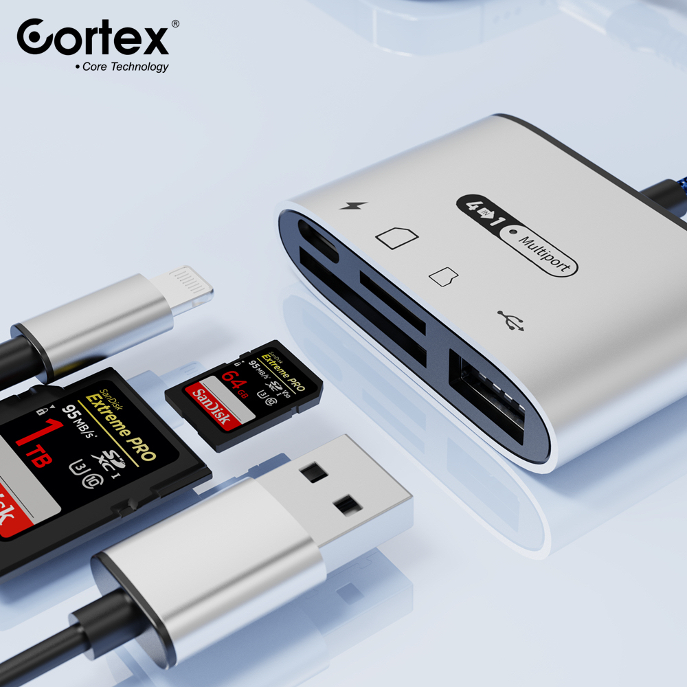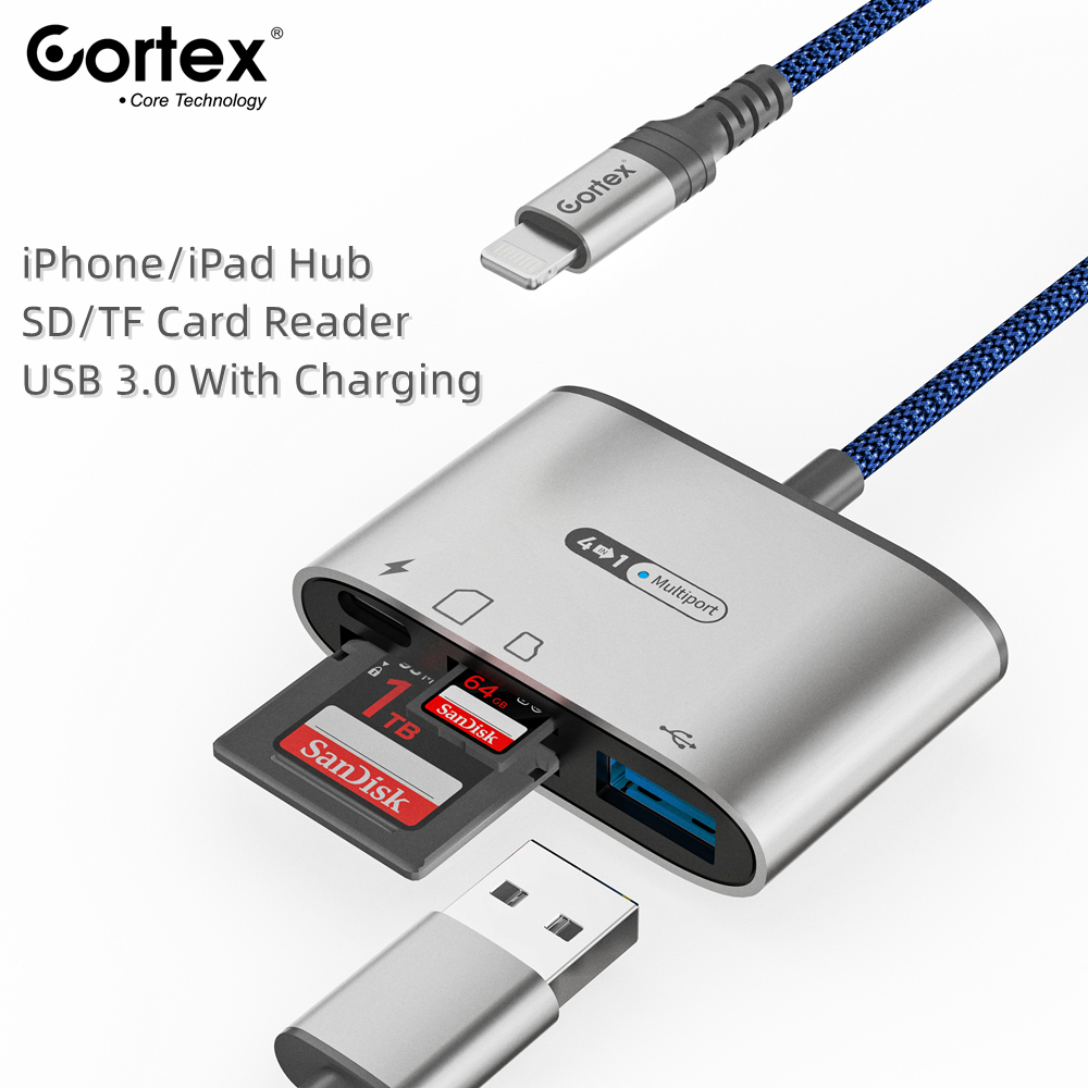 Cortex Power - MH389 Card reader Lightning To SD/TF Card / USB3.0 4 in 1 OTG With Charging Adapter iPhone iPad