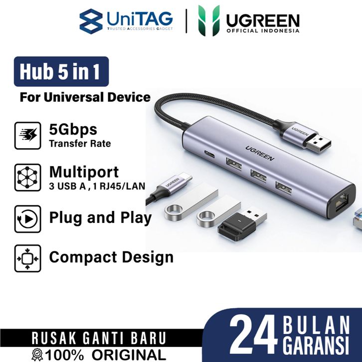 UGREEN Adaptor Ethernet Hub USB 3.0 4 in 1 LAN RJ45 Gigabit Ethernet Adapter for Laptop Komputer by UniTAG