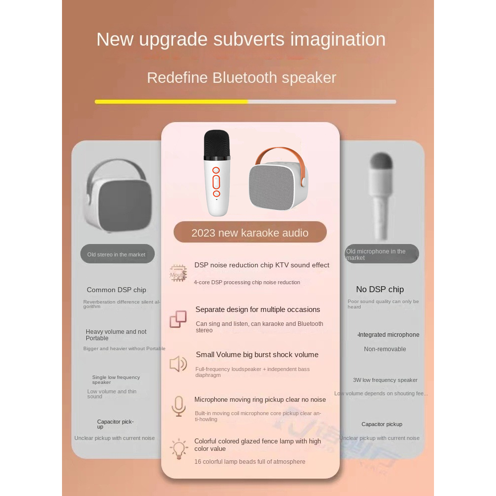 Speaker Bluetooth Mini 2Mic Portabel Microphone Karaoke Rumah Musik Box Set HIFI Full Bass Stereo Bluetooth 5.3 Speaker MP3 KTV Rumah Mini Dilengk
