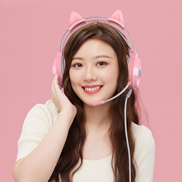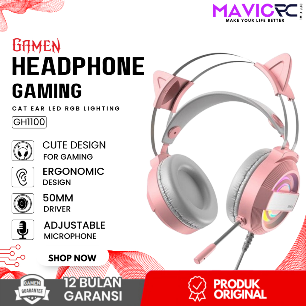 GAMEN GH1100 Pink Headset Earphone Headphone Gaming Cat Ear LED RGB Lighting Original Bass - Garansi Resmi 1 Tahun