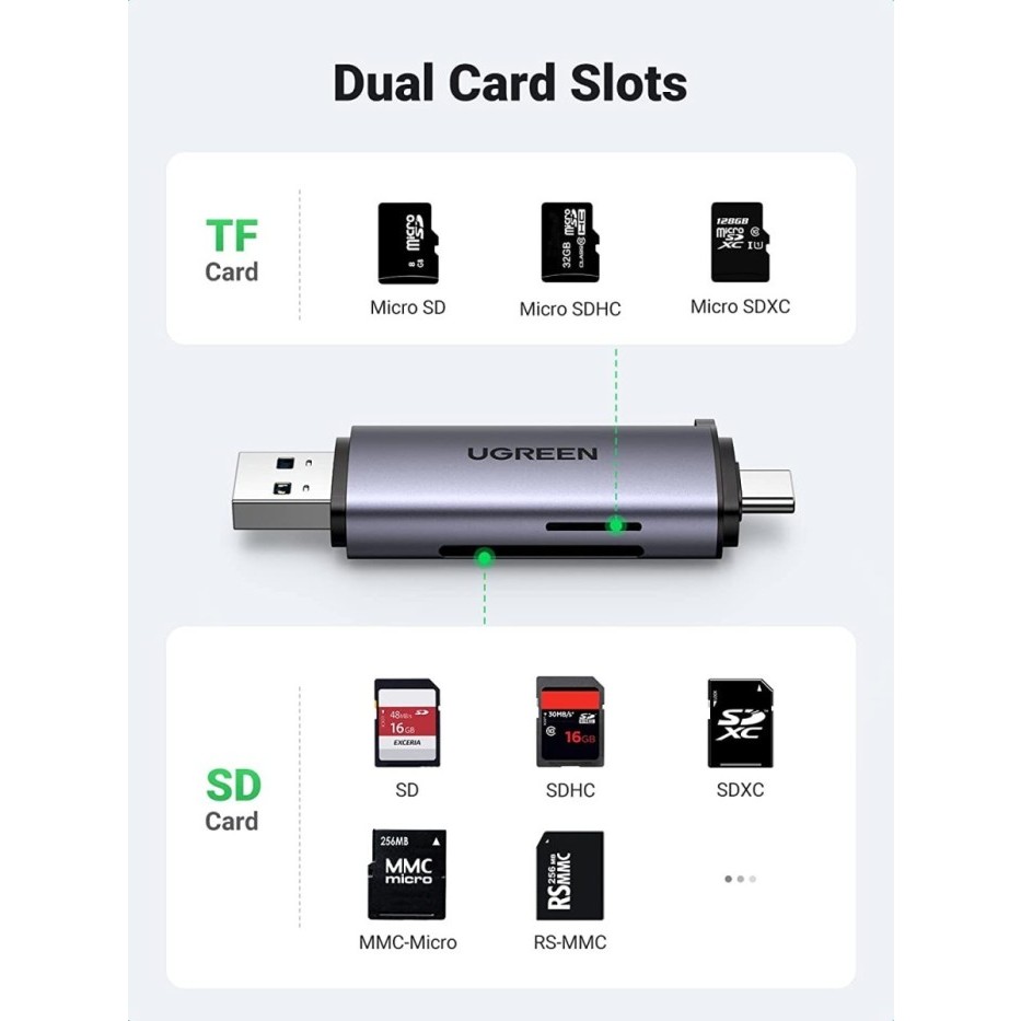 UGREEN Card Reader USB Type C, USB A 3.0 To USB 3.0 SD/TF Card etc