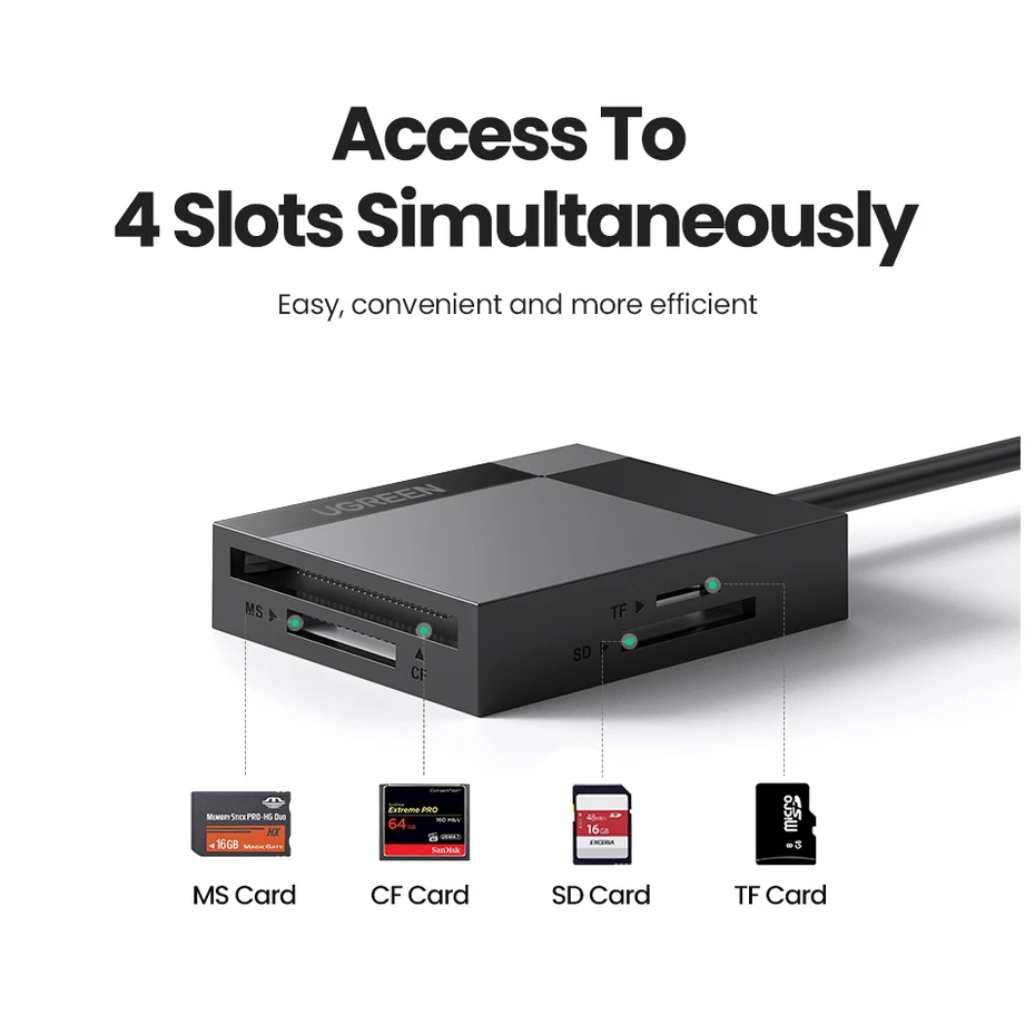 UGREEN Card Reader 4 in 1 SD TF MS CF USB 3.0 & Usb Type C All In One 2TB Max