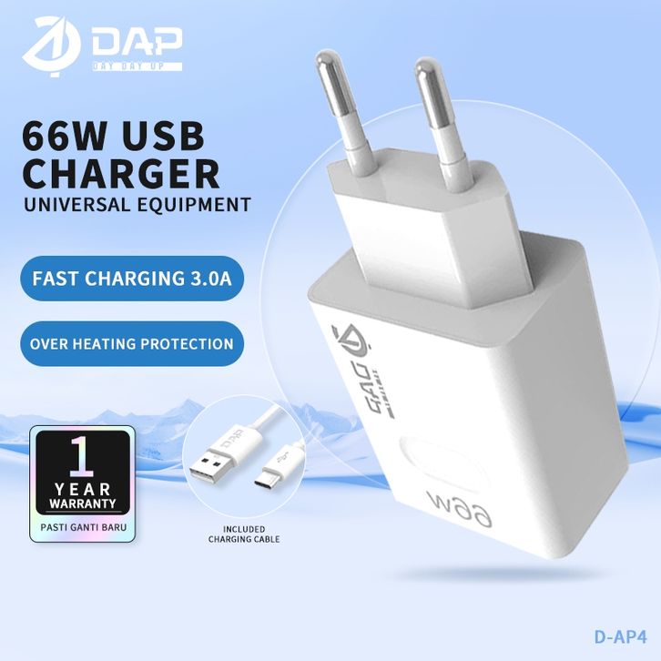 DAP D-AP4 Charger PD 66 Watt 3.0A Include Cable USB to Type C Fast Charging - Garansi 1 Tahun