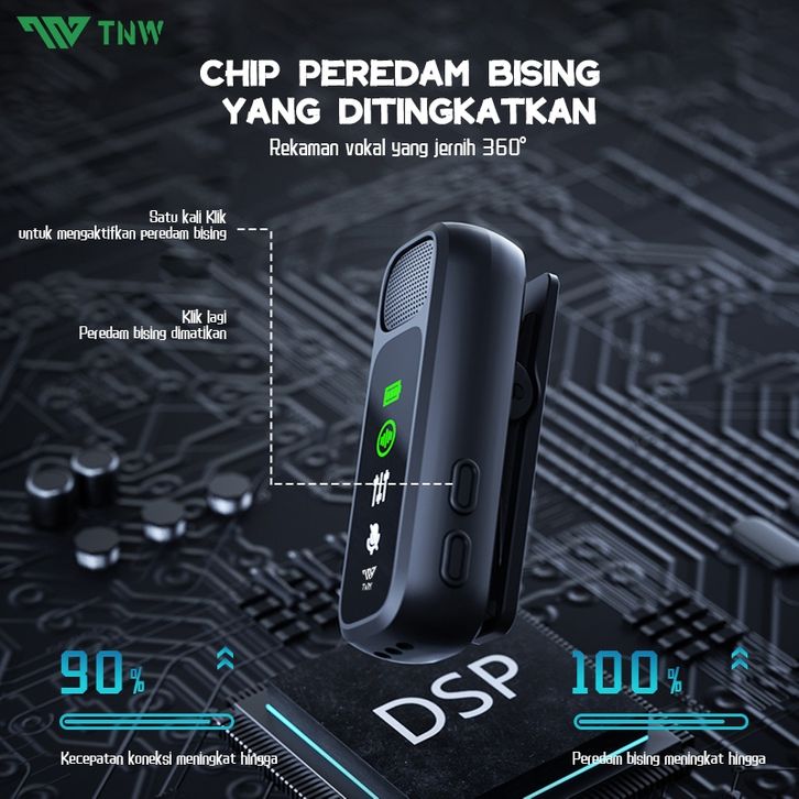 TNW A13 Wireless Microphone 2-In-1 Clip On Mic Wireless Dual Lavalier Mikrofon Iphone dan Charging Case Bluetooth Mikrofon Wireless Clip on untuk TikTok YouTube Facebook Live Stream
