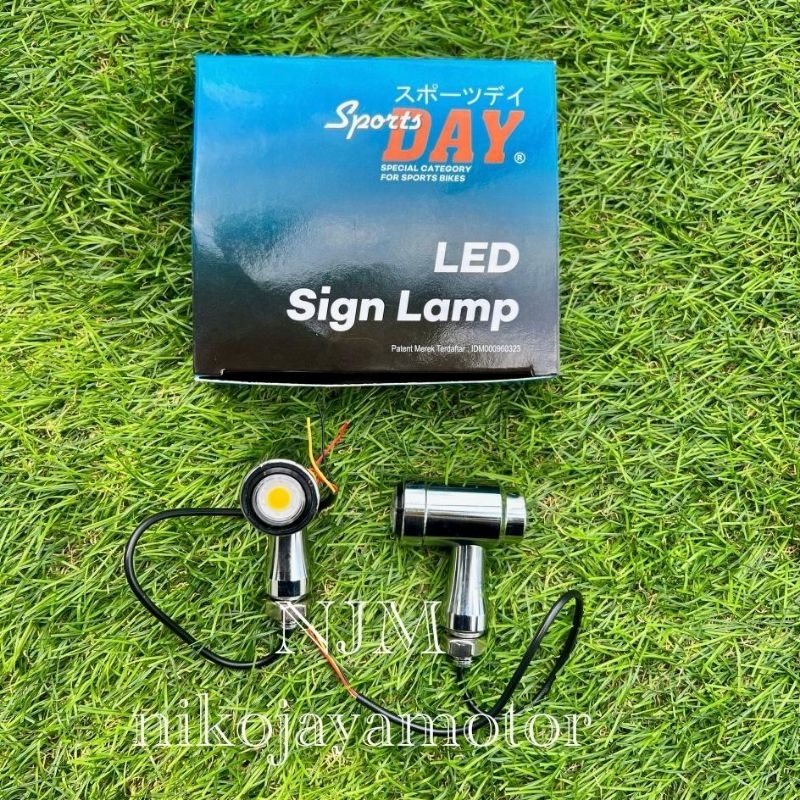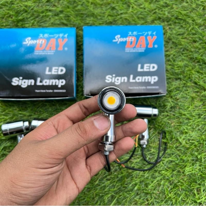 RITING SEIN ALMINI ALUMINIUM CHROME RETENG BULAT PALU MOTIF LED SEIN KUNING & BIRU SET DEPAN BELAKANG FULL ALMINI ALUMUNIUM BY DAY