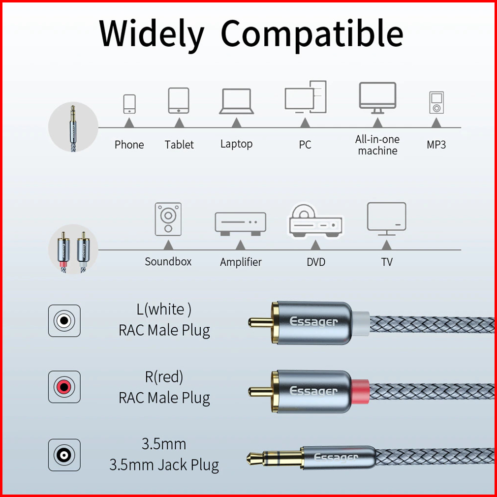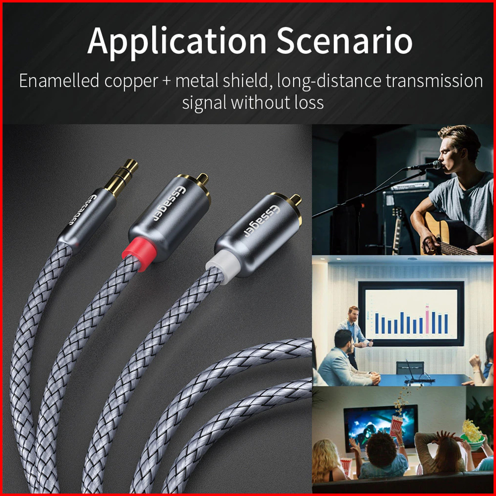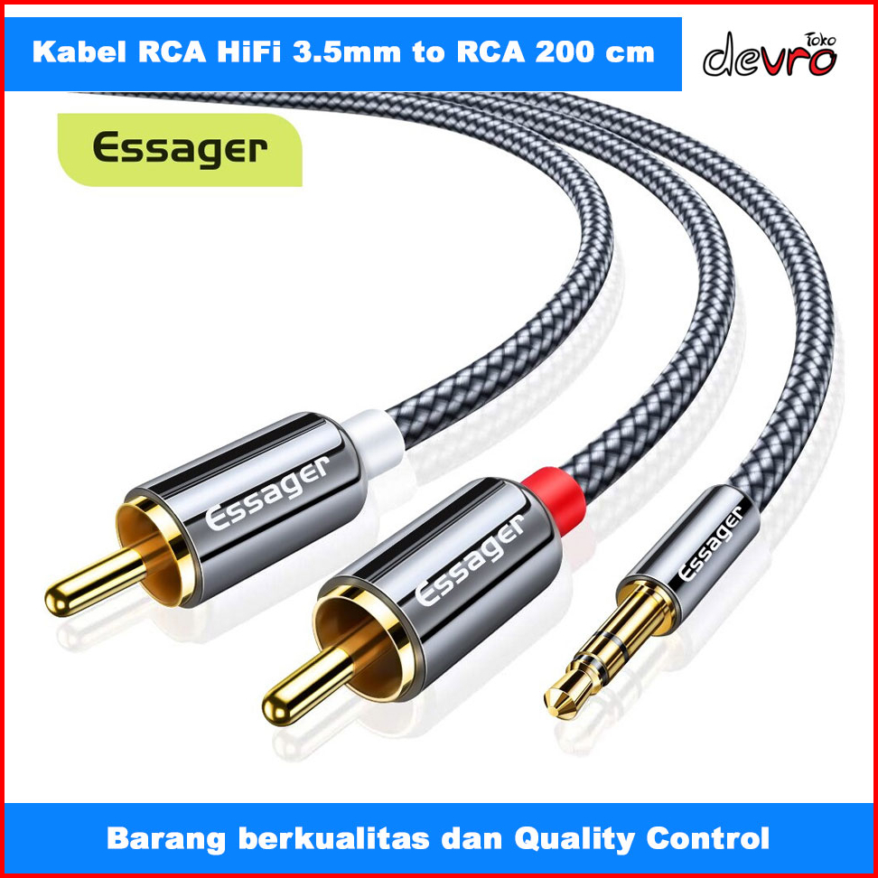 Kabel Rca Ke Jack Aux 3.5mm - Kabel Audio Hifi 3.5mm To Rca 2 Meter - Essager Av117