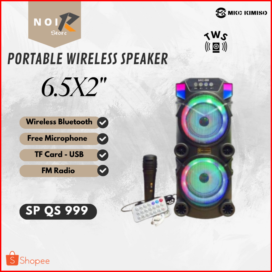 Noir Speaker Variasi 999 Bluetooth Ukuran 6.5 X 2 Inch Free Micropone