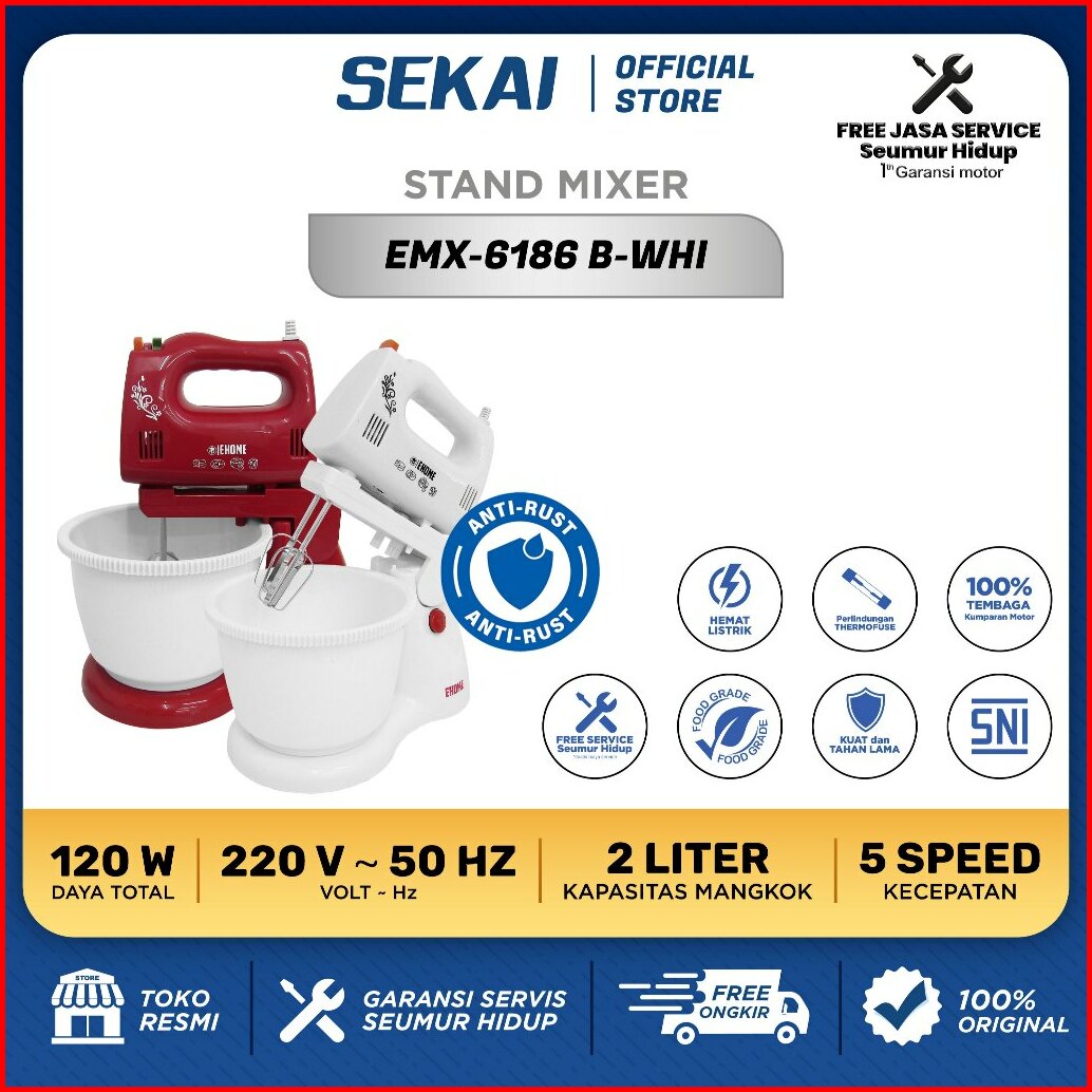 Sekai Ehome Stand Mixer Kapasitas 2 Liter - Emx 6186 B