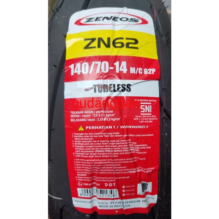 Ban Luar Motor Aerox Xmax Ring 14 Zeneos ZN62 Uk 140/70-14 Tubeless Medium Compound