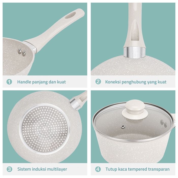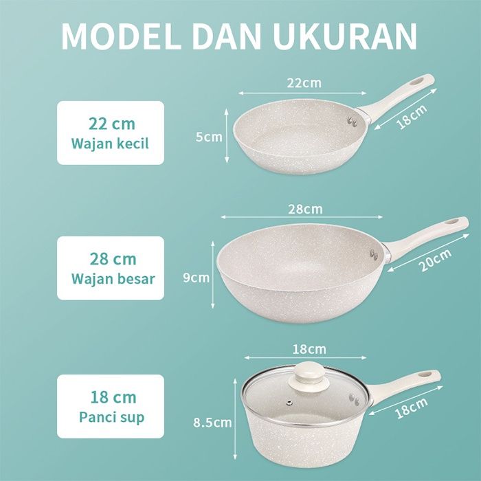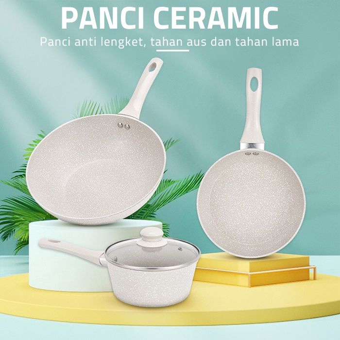GM Bear Panci Set Keramik Anti Lengket P0411 - Luversa Panci Ceramic Set 3psc