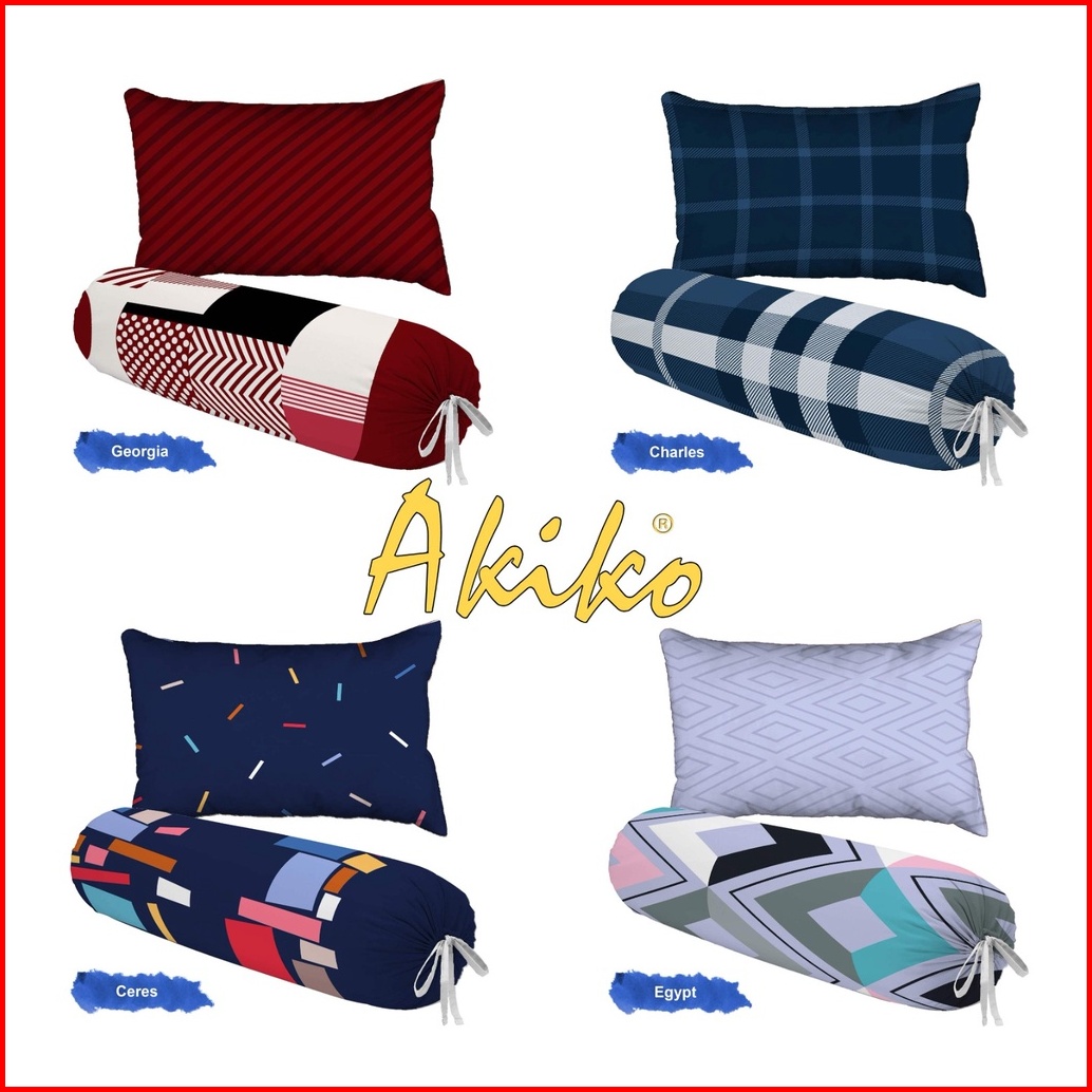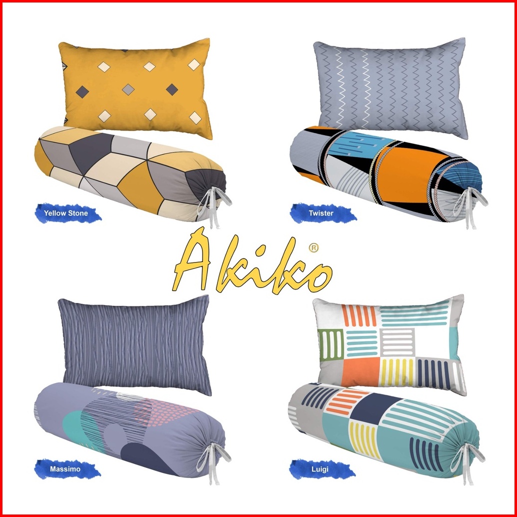 Per 2 Pcs Akiko - Sarung Bantal 2 Pcs Sarung Bantal 1 Pc Dan Sarung Guling 1 Pc Motif Minimalis