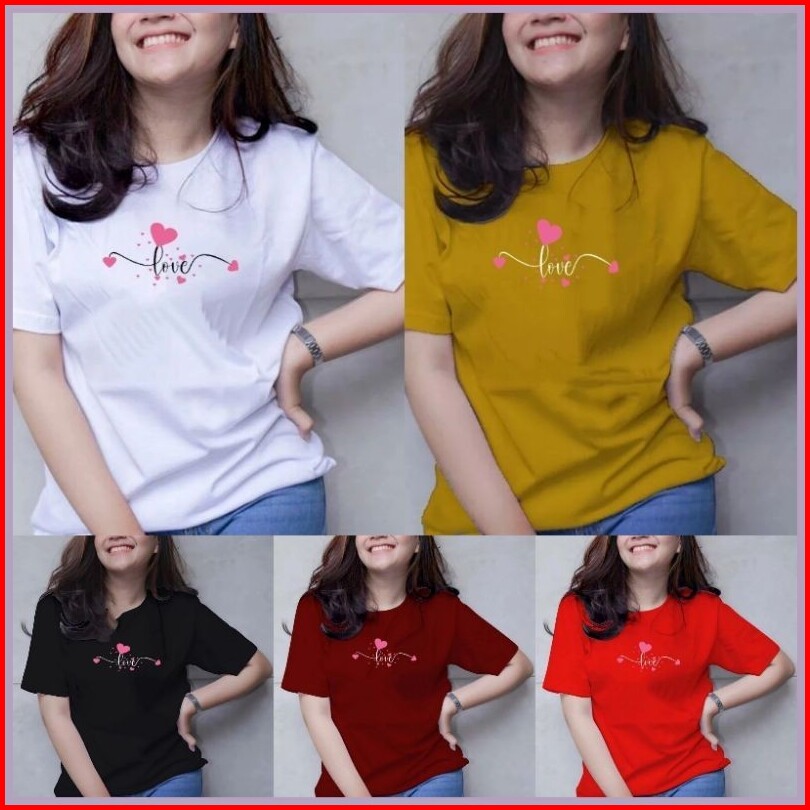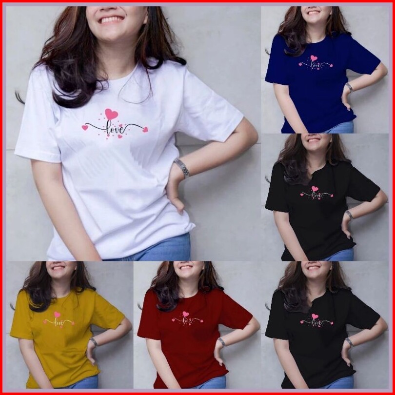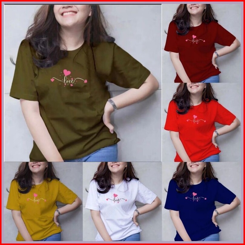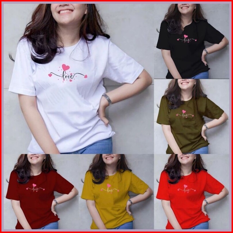 100rb Dapat 6 Pcs Kaos Wanita Lengan Pendek Bahan Bebyterry Motif Banyak Love Enak Di Pakai Cocok Untuk Santai Baju Atas