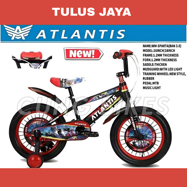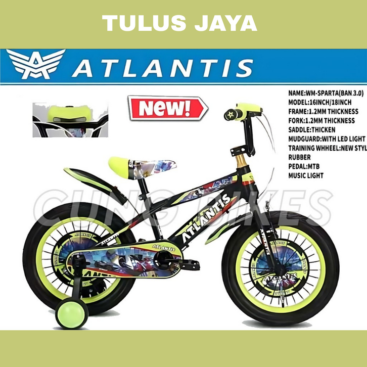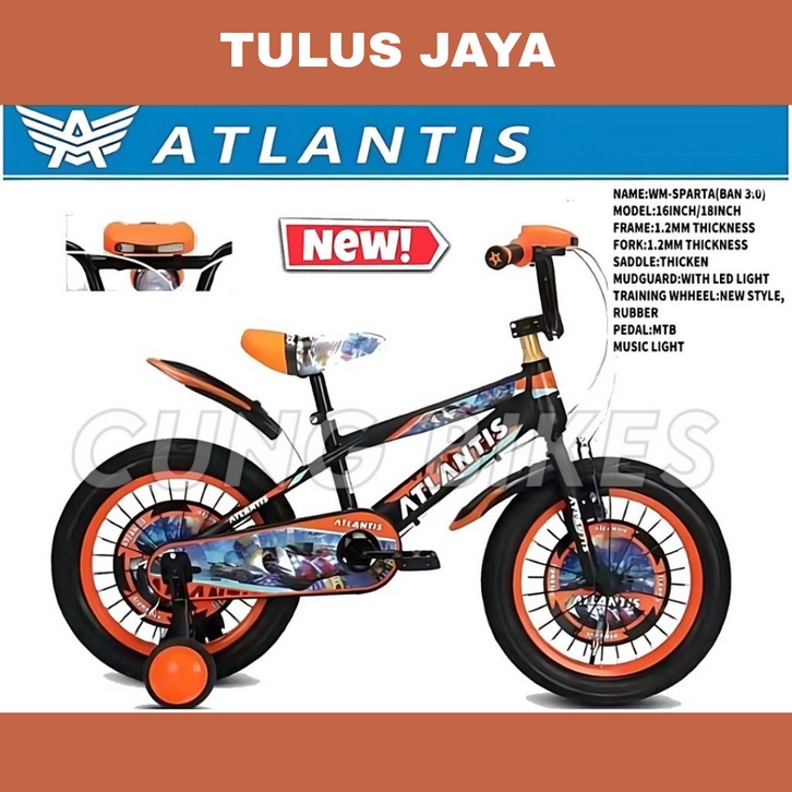 SEPEDA ANAK LAKI BMX UKURAN 12 16 18 INCH ATLANTIS SPARTA NEW MUSIK DAN LAMPU UNTUK USIA 2-8 TAHUN